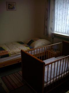 Wohn-/Esszimmer Schlafraum mit zwei einzelbetten + Kinderbett